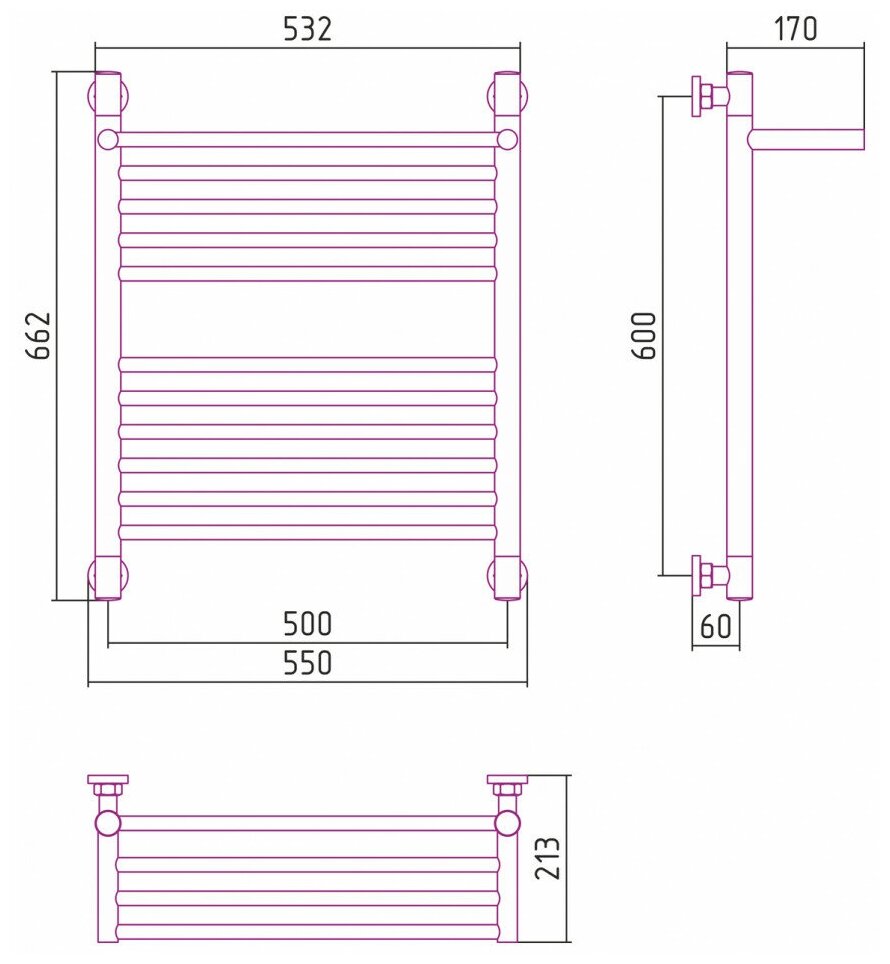 Водяной полотенцесушитель Сунержа 00-0223-6050 "БОГЕМА+" Полотенцесушитель водяной 1П 600х500 мм, без покрытия