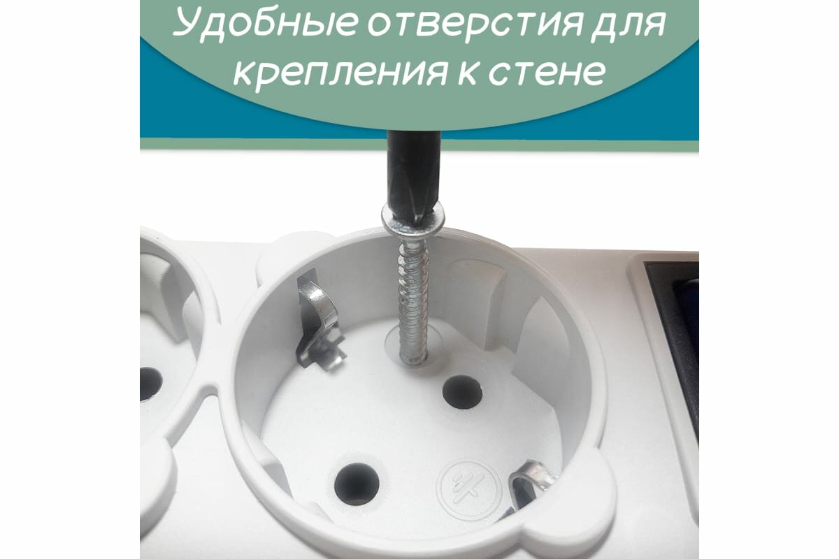 Сетевой фильтр 5 гнезд 5 метров с заземляющими контактами белый 10А/2,2кВт ПВС 3х0,75 B PowerCube
