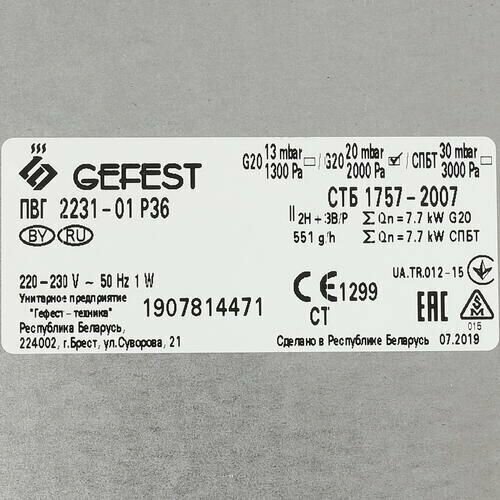 Купить Gefest Газовая варочная поверхность ПВГ 2231-01 Р36 GEFEST