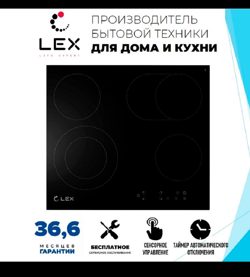 Электрическая варочная поверхность LEX EVH 642 BL [ст-керамика, конф.:4, черный]