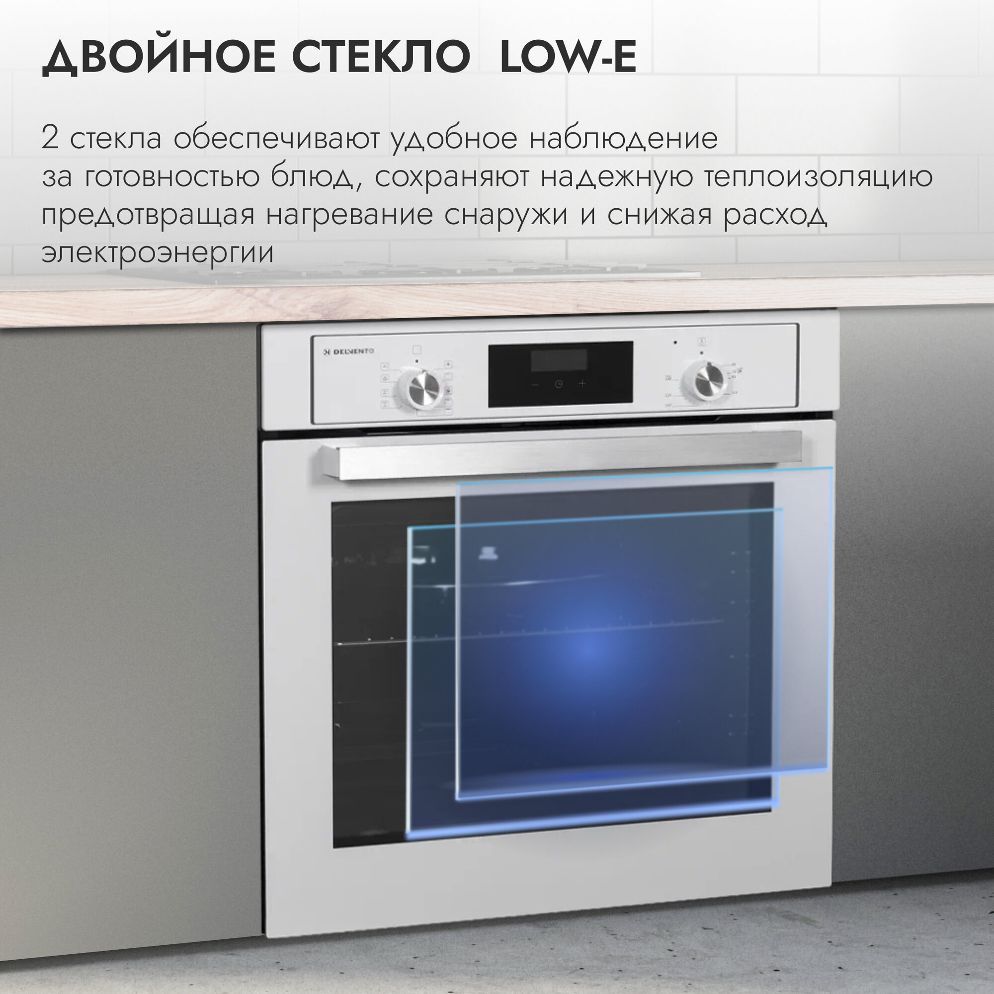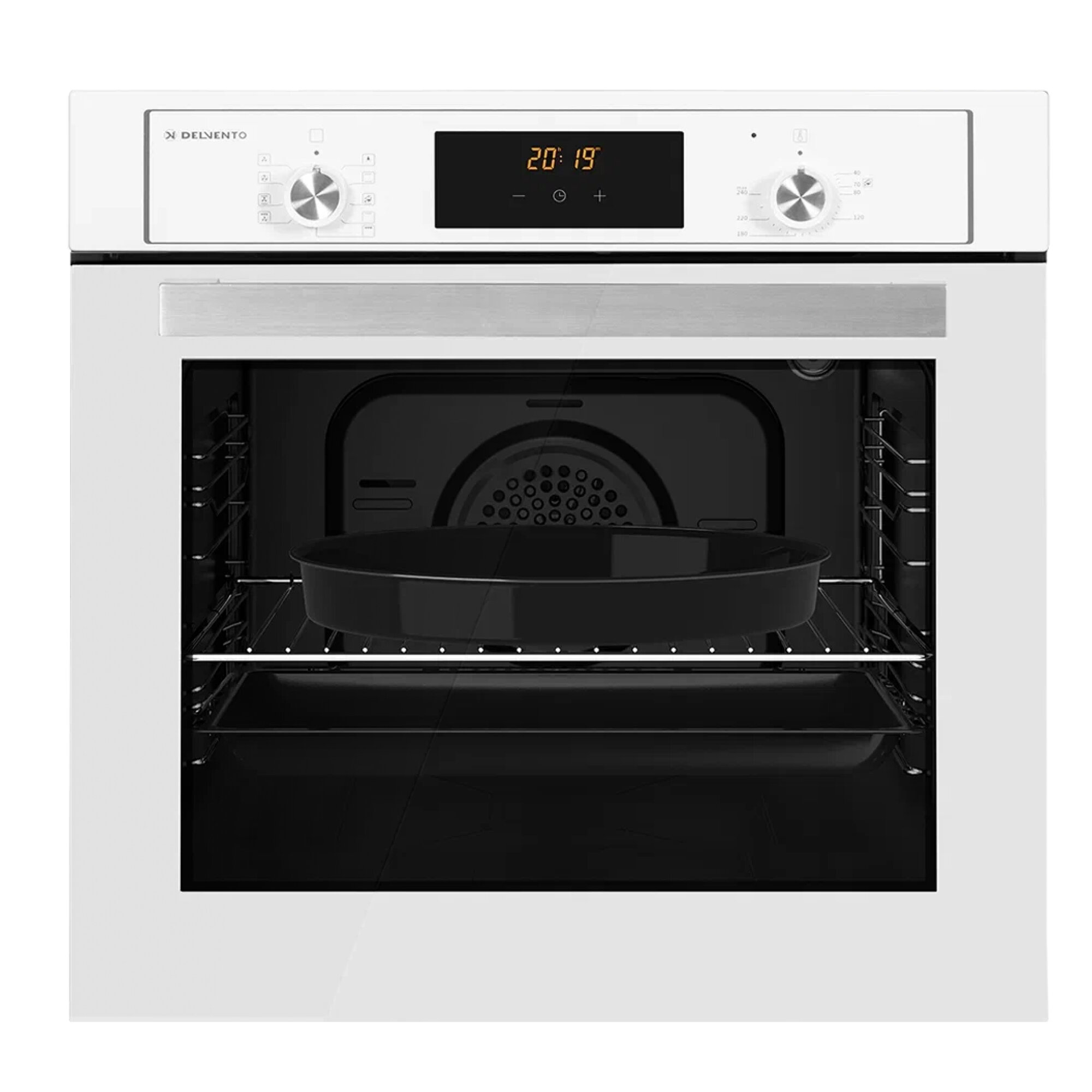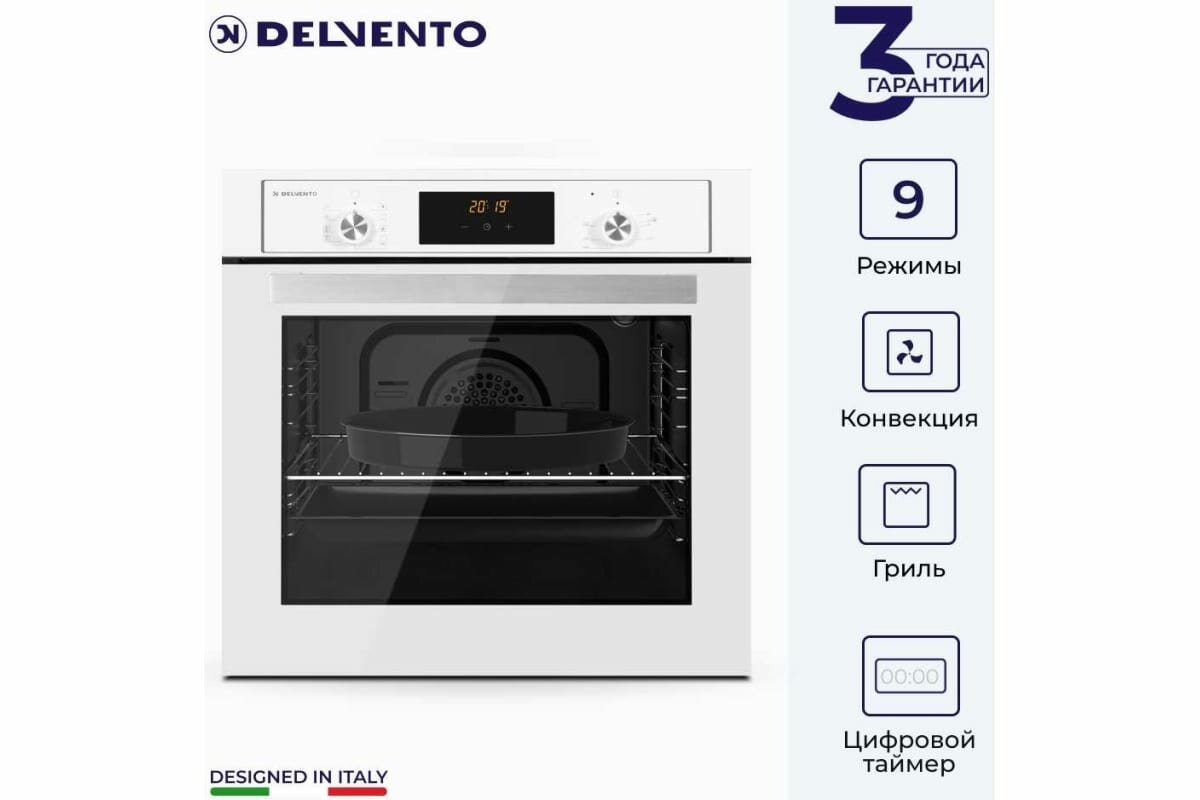 Купить Духовой шкаф электрический встраиваемый 60см белый / 9 режимов (гриль + конвекция) / DELVENTO V6EW59001 / дисплей / таймер 90 мин, часы / двойное стекло LOW-E / хром. решетка и 2 противня: стандартный + круглый / подсветка / гарантия 3 года /
