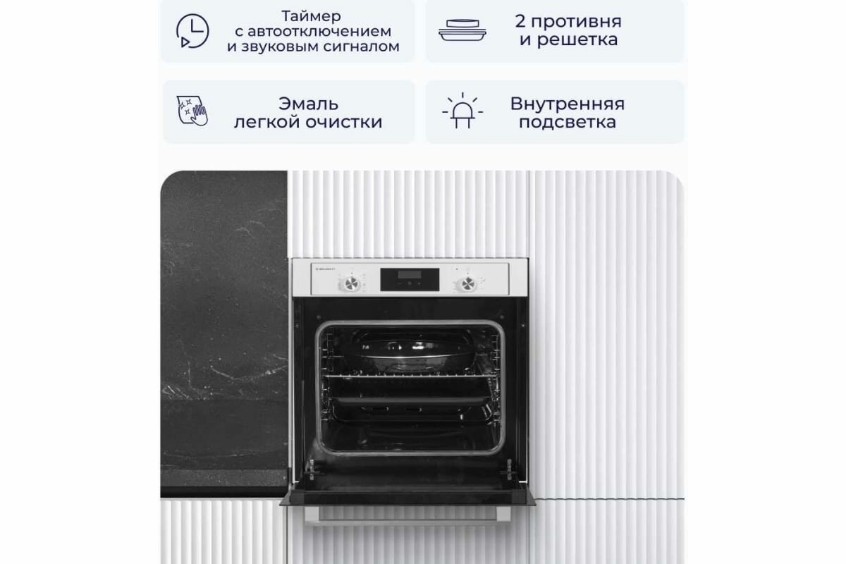 | Подробная комплектация | Духовой шкаф, шнур для подключения, инкструкция, противень, дополнительный противень |