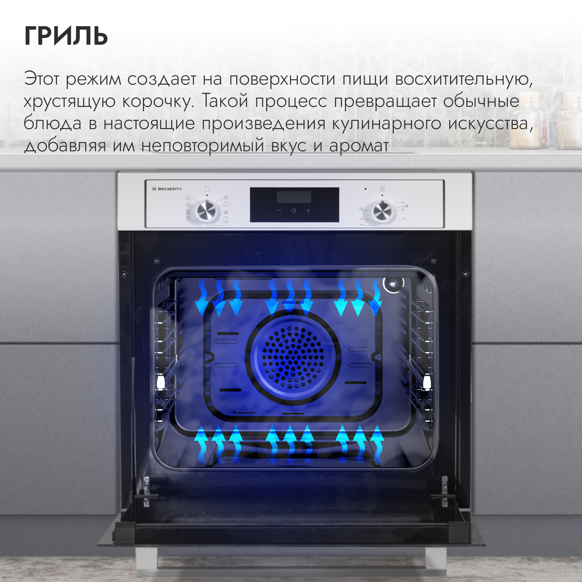 Электрический духовой шкаф DELVENTO V6EM59001, конвекция+гриль, серебристый