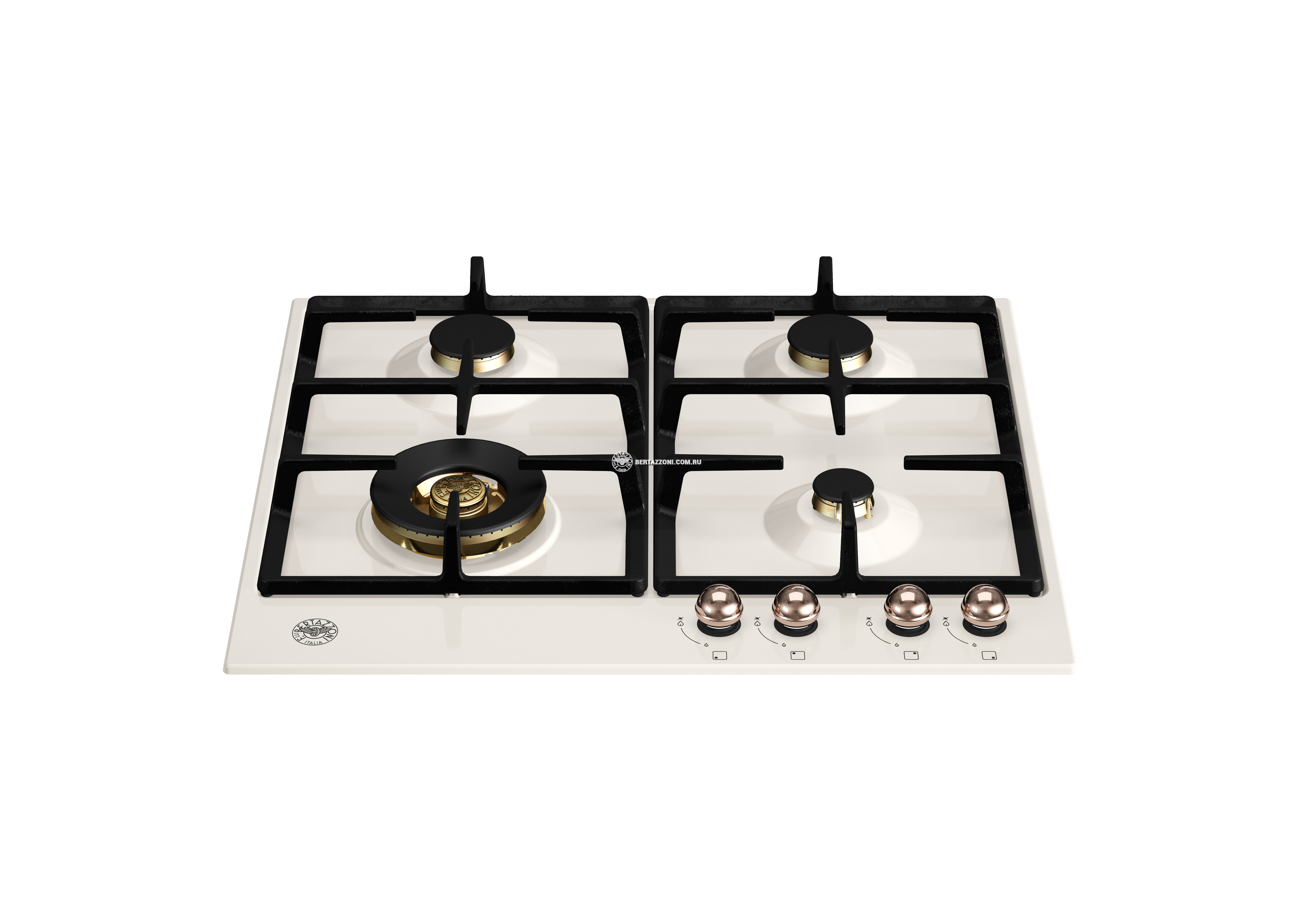 P604LHERAC Встраиваемая газовая варочная панель Bertazzoni, 60 см Слоновая кость / медь