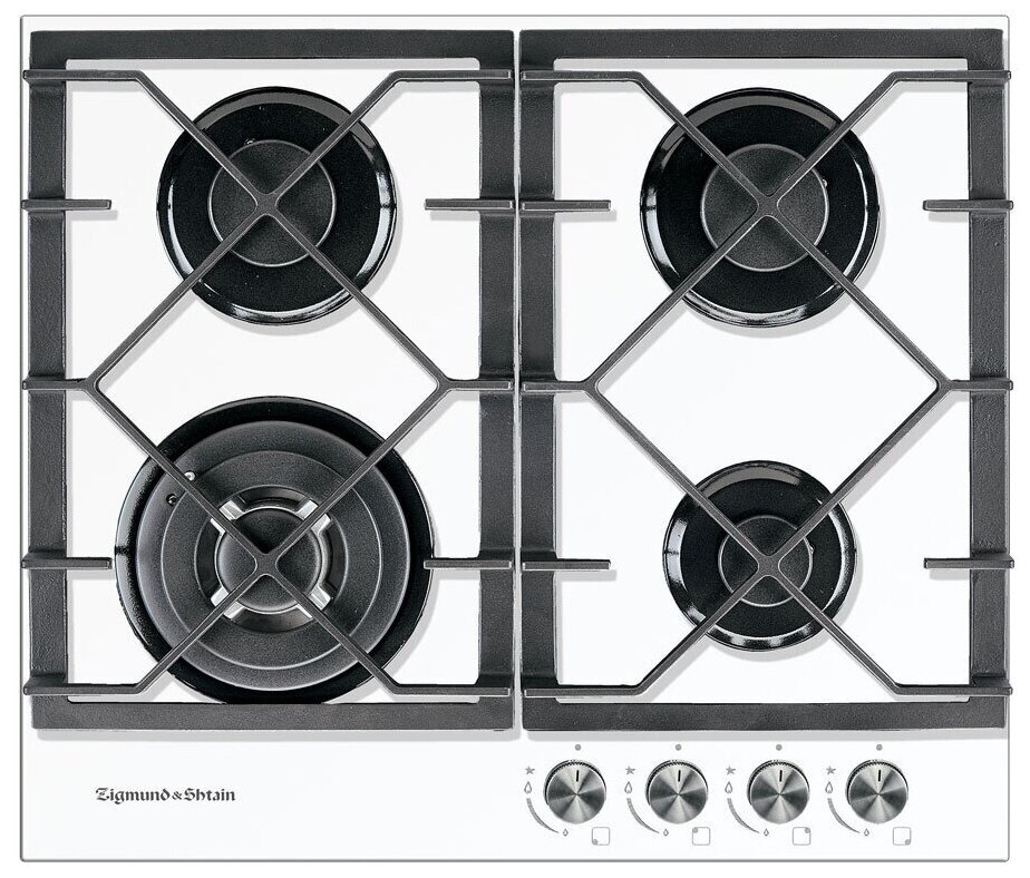Варочная панель газовая встраиваемая Зигмунд & Штейн MN 175.61 W закаленное стекло белый 50х584х510мм 4 конфорки 2 решетки / газ-контроль /