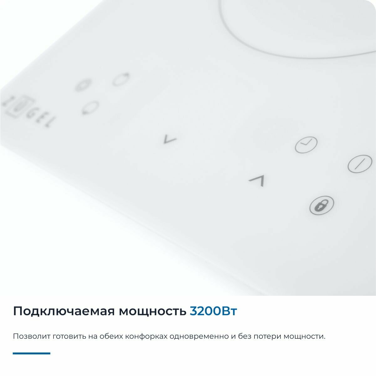 Электрическая варочная панель ZUGEL ZEH292B, 3200 Вт, функция блокировки управления, стеклокерамика, сенсорное управление, таймер автоматического отключения