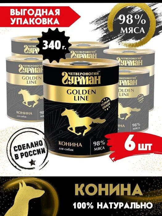 Корм консервированный для собак Четвероногий Гурман "Golden line Конина", 340 г х 6 шт.