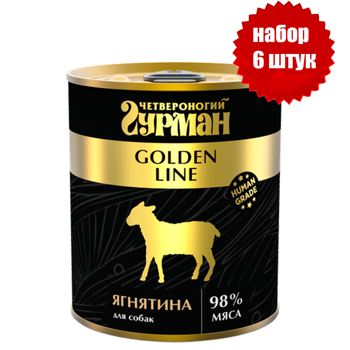 Купить Четвероногий Гурман Golden для собак Ягненок натуральный в желе,консервы 340г (6 банок)