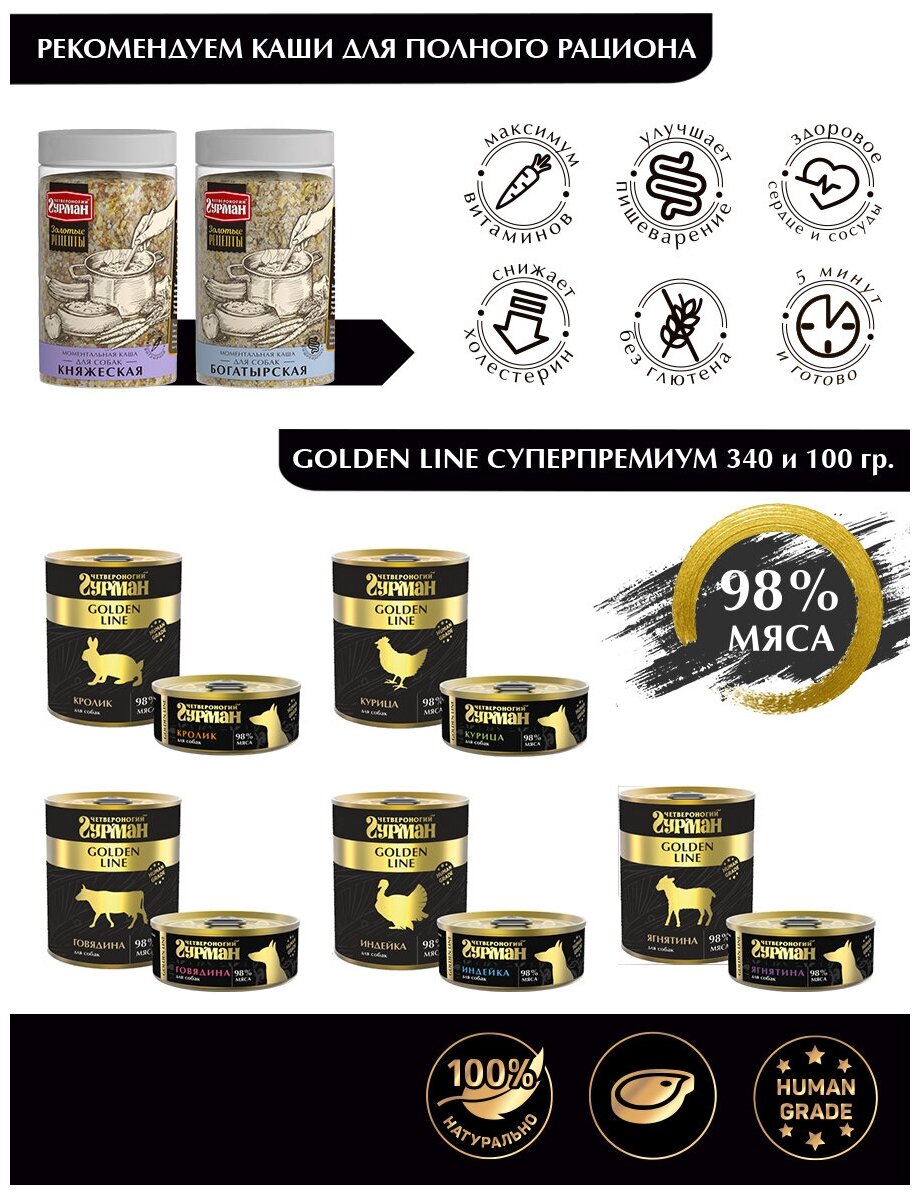 Влажный корм для собак Четвероногий гурман "Golden line Кролик", 340 г х 12 шт.