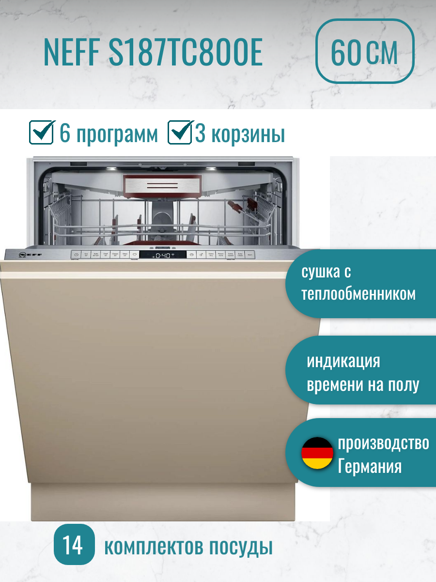 Встраиваемая посудомоечная машина NEFF S187TC800E 60 см интересное: