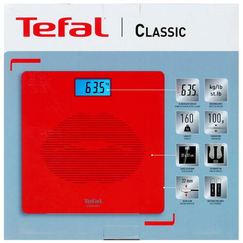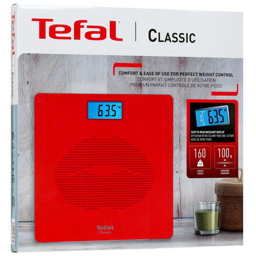 Напольные весы Tefal Classic PP1536V0, красный, до 160 кг, автоотключение, цифровой дисплей