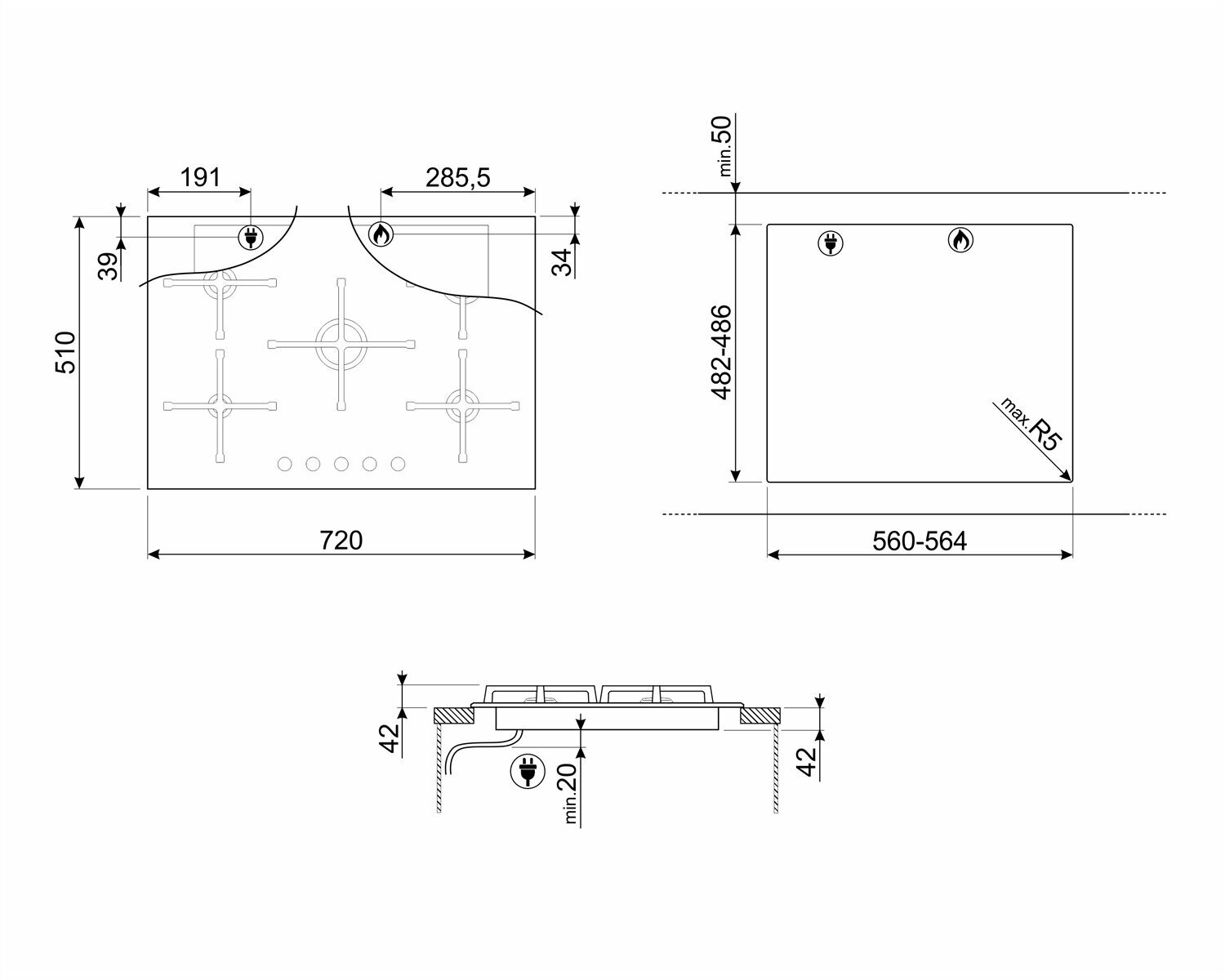 | Ширина для встраивания | 56 см |