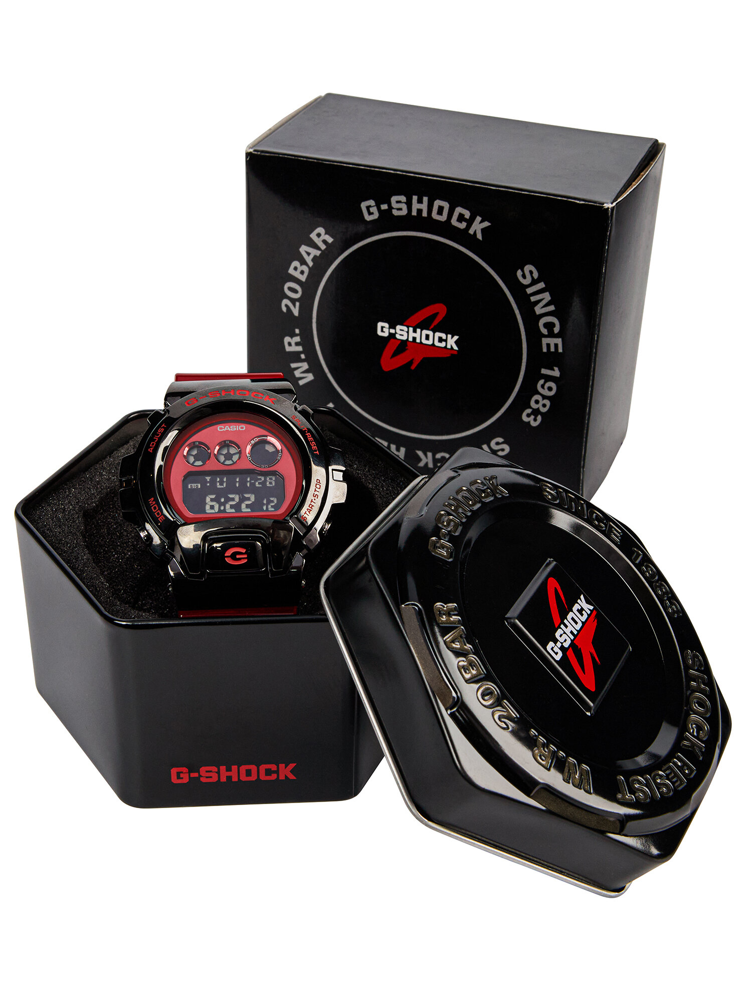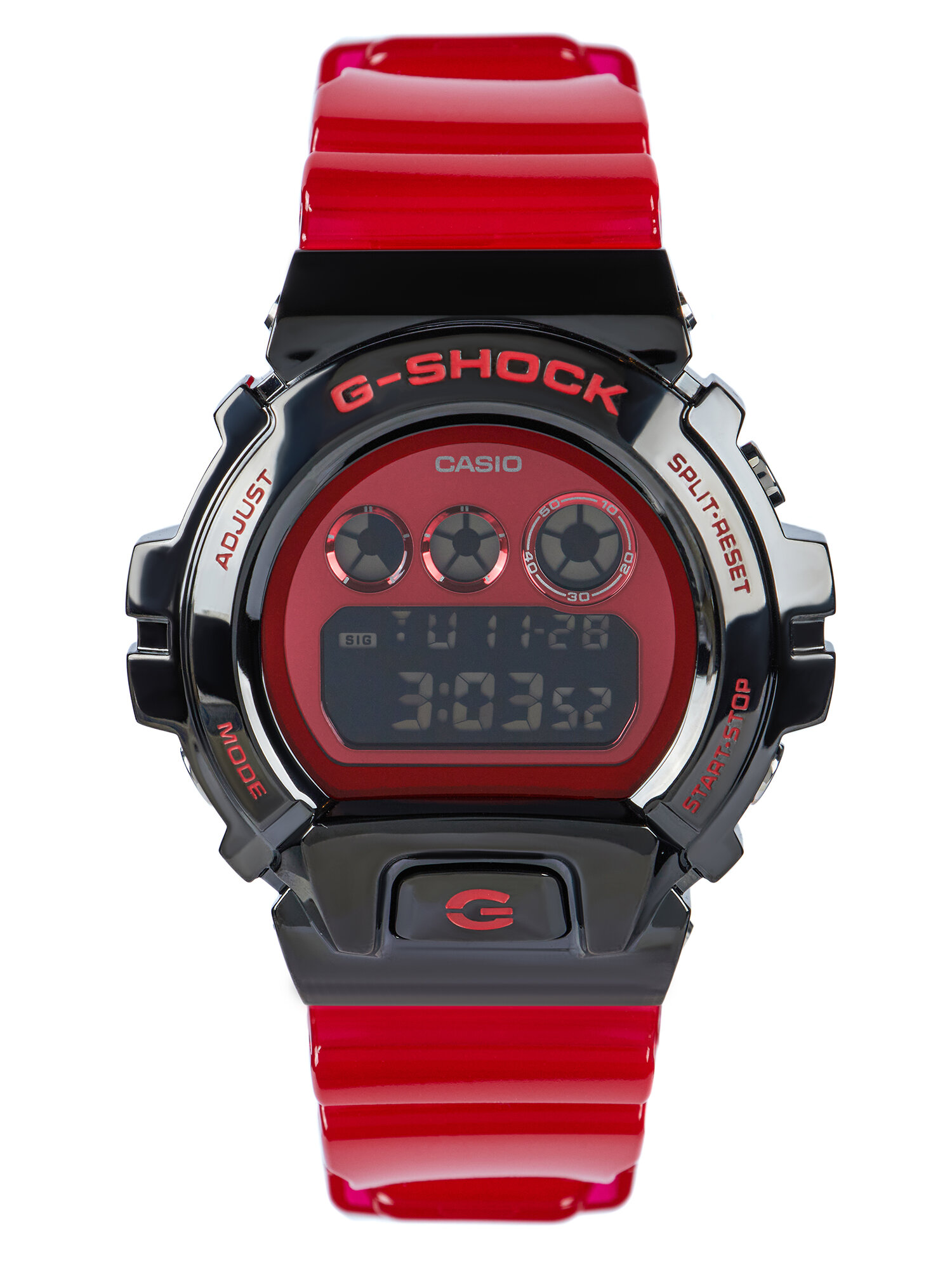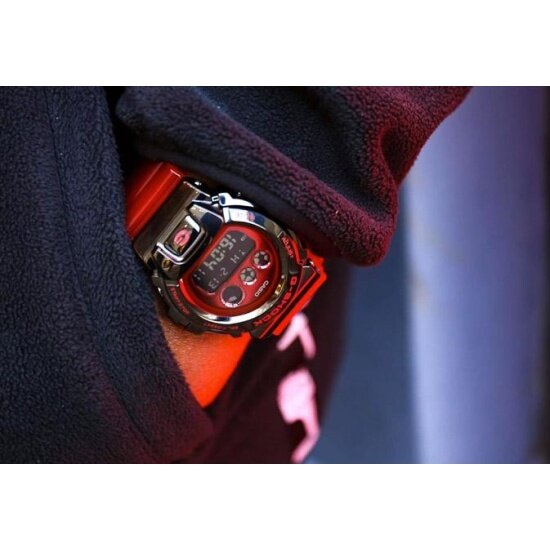 Наручные часы CASIO G-Shock GM-6900B-4 мужские, кварцевые, будильник, секундомер, таймер обратного отсчета, водонепроницаемые, противоударные, подсветка дисплея, красный