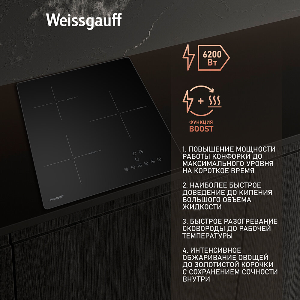 Индукционная варочная панель Weissgauff HI 430 BA Cross 3 года гарантии, Опция Boost, Защитное автоотключение, таймер, защита от детей