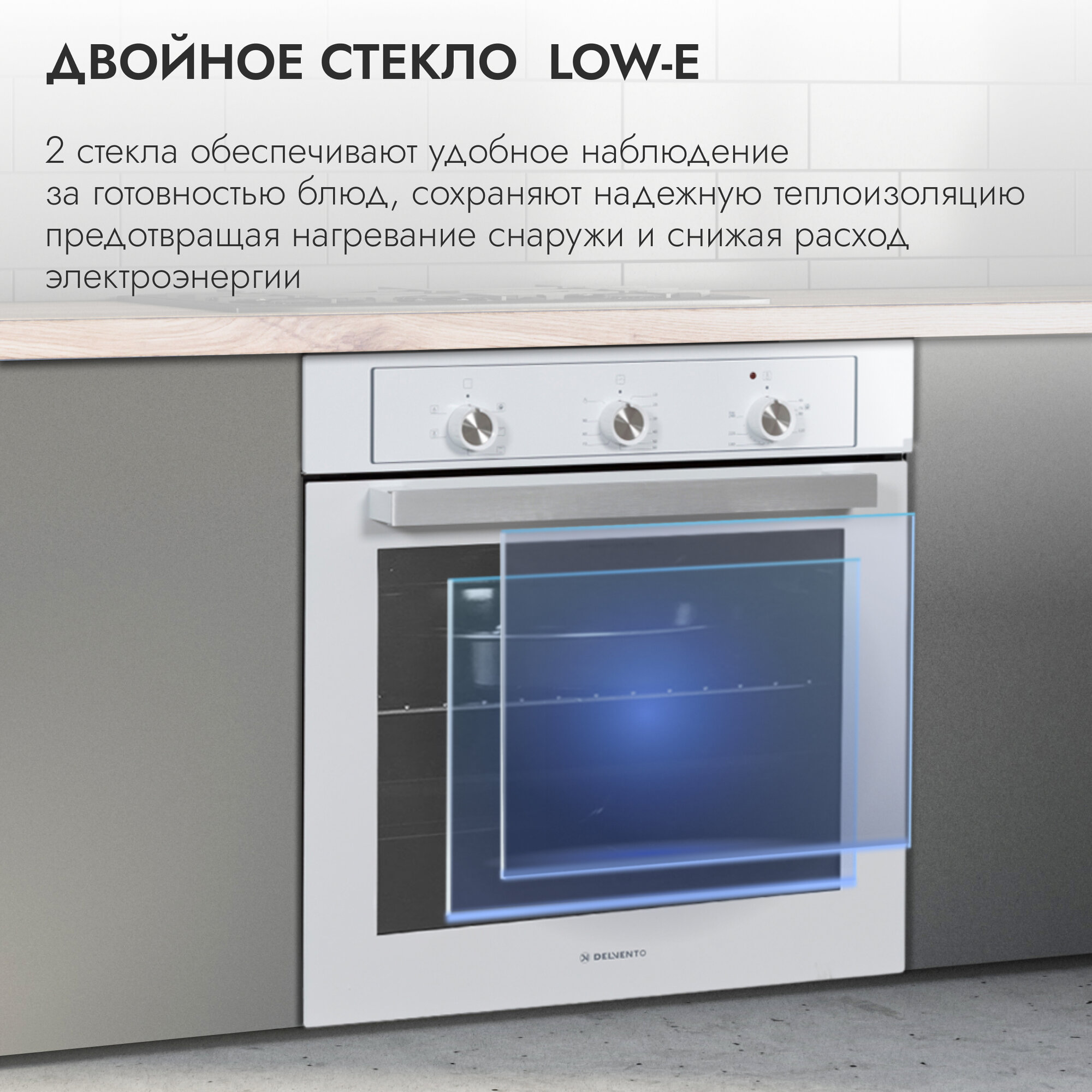 Купить Духовой шкаф электрический встраиваемый 60см белый / 5 режимов (конвекция) / DELVENTO V6EW16001 / пароочистка / подсветка / таймер 90 мин / двойное стекло LOW-E / стандартный + круглый противень / автоотключение / 3 года гарантии /