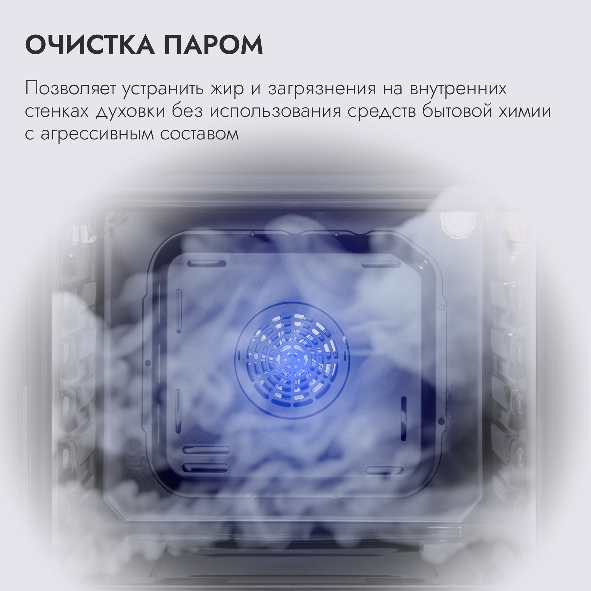 Духовой шкаф DELVENTO V6EM16001 электрический встраиваемый 60см серый / 5 режимов (конвекция) / пароочистка / подсветка / таймер 90 мин / двойное стекло LOW-E / стандартный + круглый противень / автоотключение / 3 года гарантии /