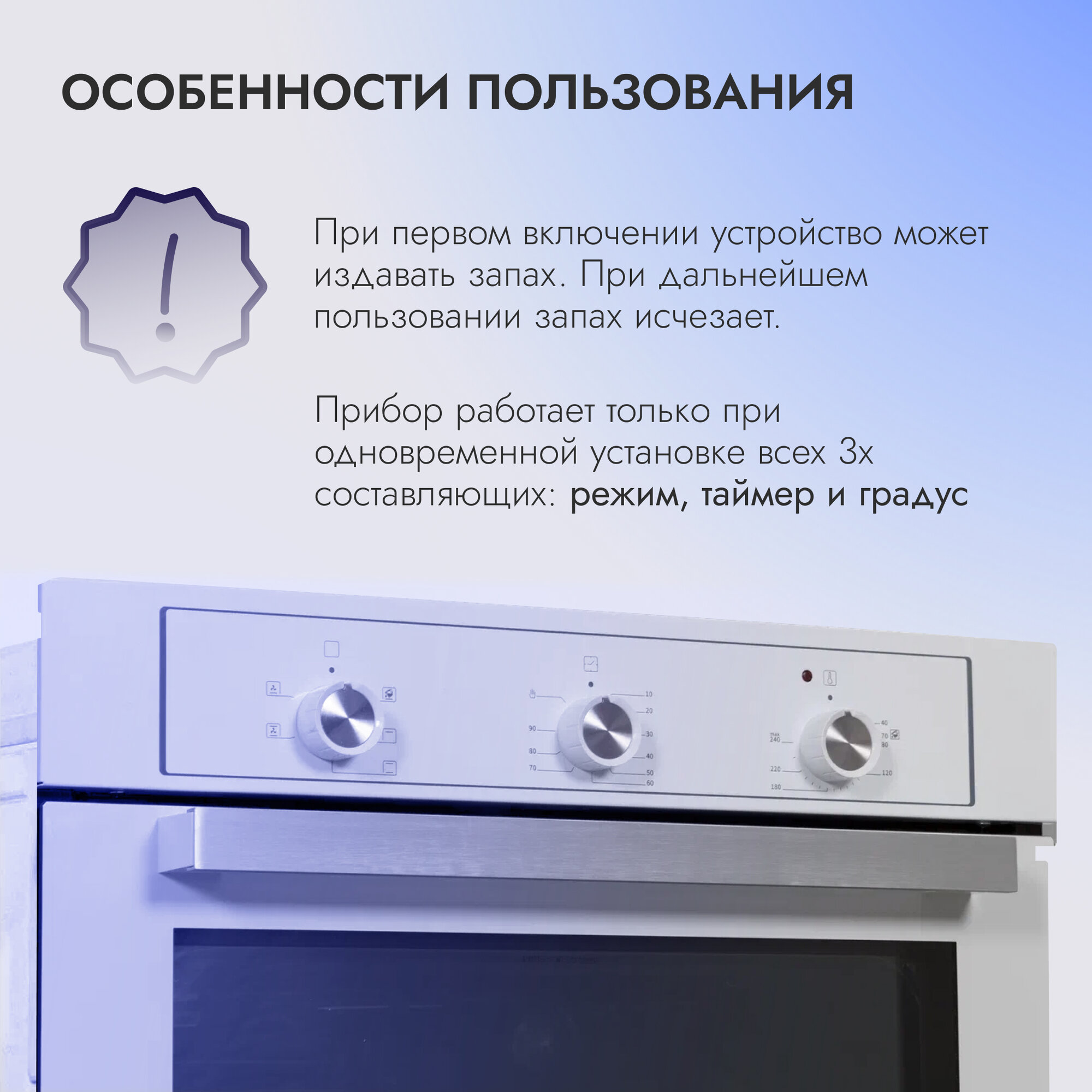 СохранитьДуховой шкаф электрический встраиваемый 60см белый / 5 режимов (конвекция) / DELVENTO V6EW16001 / пароочистка / подсветка / таймер 90 мин / двойное стекло LOW-E / стандартный + круглый противень / автоотключение / 3 года гарантии / интересное: