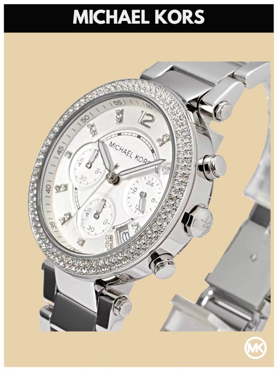 СохранитьЧасы наручные Женские Michael Kors со стразами Parker серебристые оригинал кварцевые интересное: