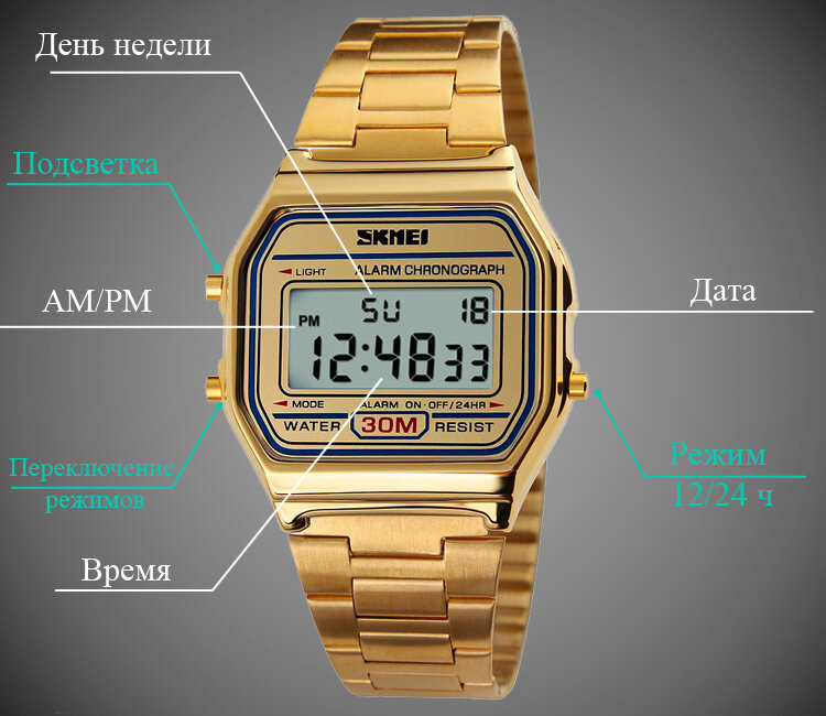 Ниже Вы можете прочитать отзывы на Часы унисекс Skmei водонепроницаемые, с будильником, золотистые, ознакомится с подробными характеристиками, посмотреть интересные обзоры и фотографии на Часы унисекс Skmei водонепроницаемые, с будильником, золотистые.