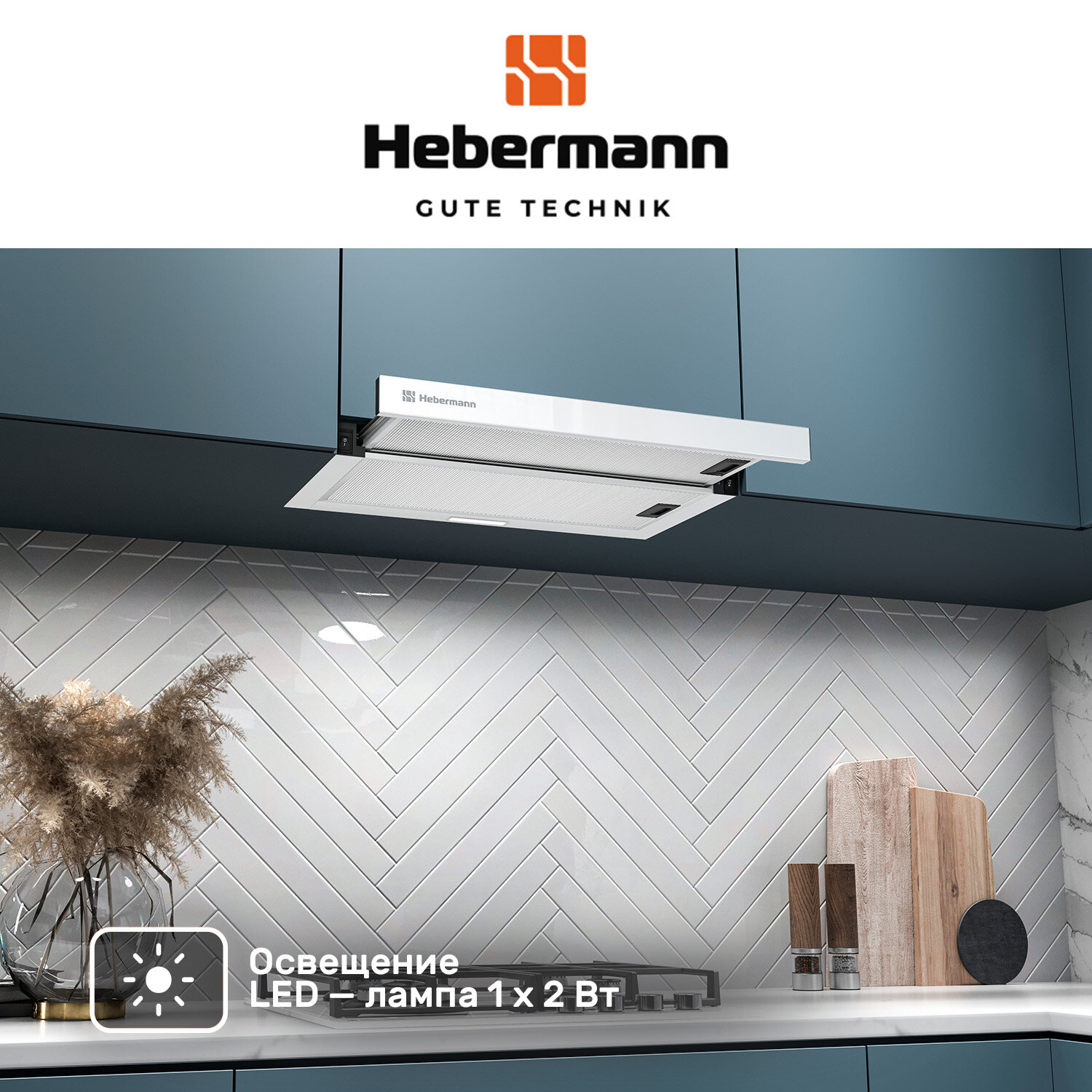 Кухонная вытяжка встраиваемая Hebermann HBFH 50.2 W, HEKS100008