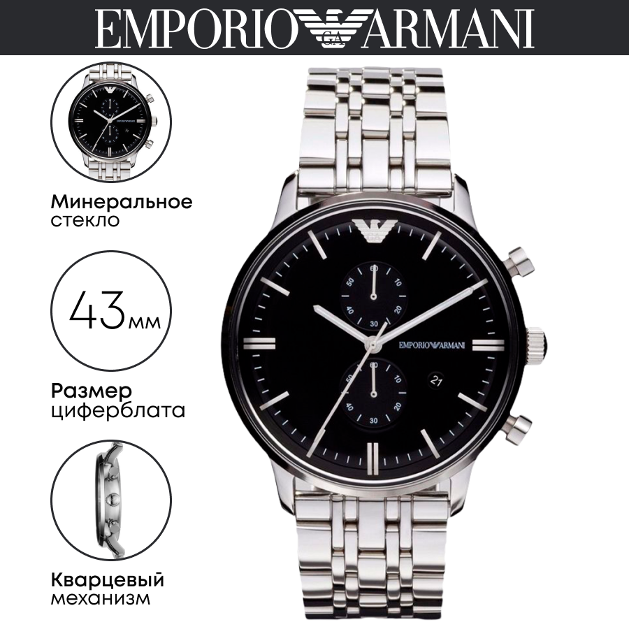 Emporio Armani AR0389 Часы Наручные Мужские с черным циферблатом интересное: