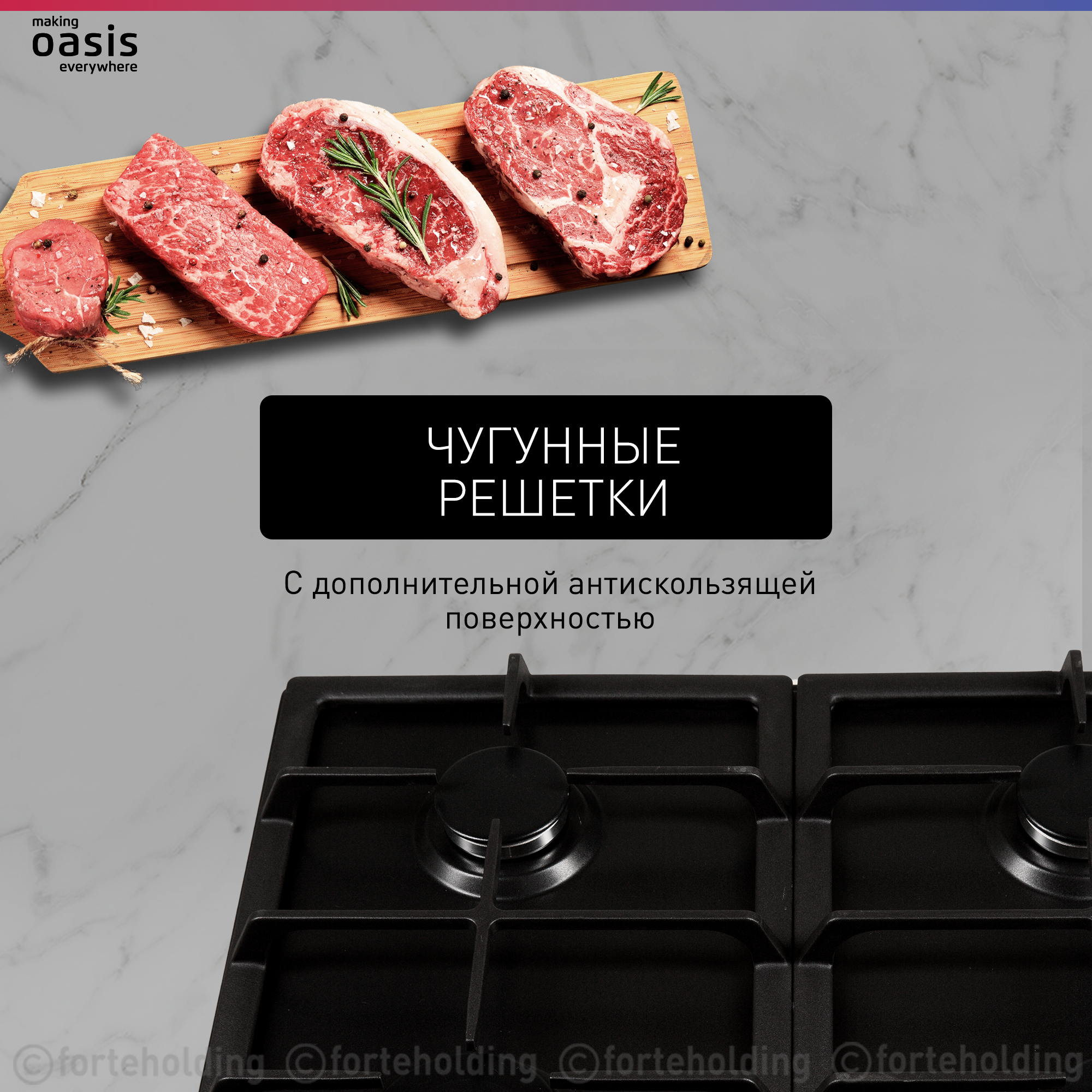 Варочная панель газовая making Oasis everywhereP-MBR (F) Черная металл решетка чугун