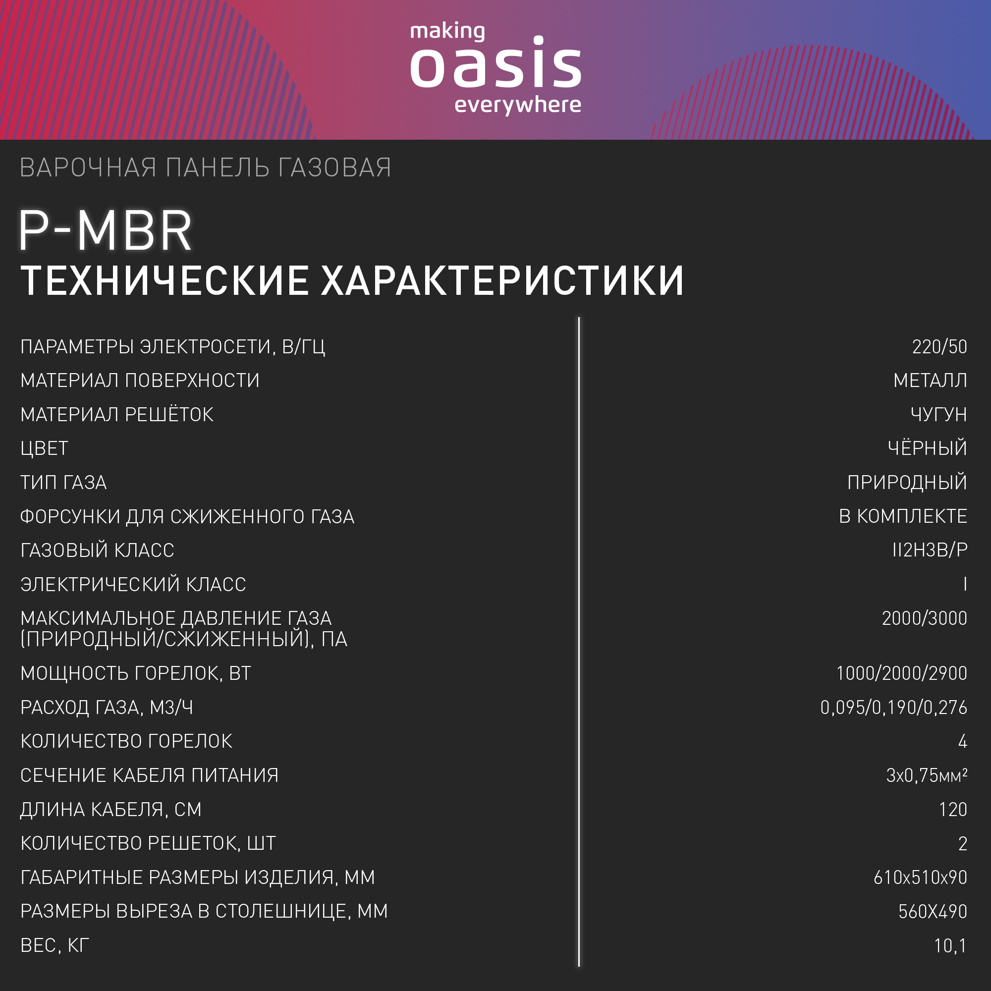 Встраиваемая панель газовая OASIS P-MBR