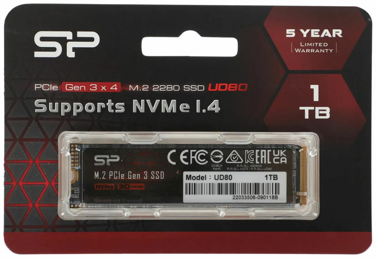 Твердотельный накопитель Silicon Power UD80 1 ТБ M.2 SP01KGBP34UD8005