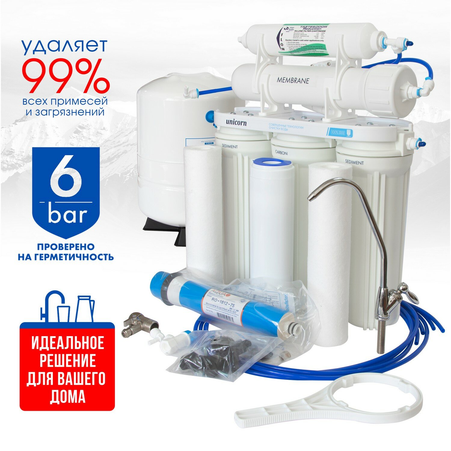 Купить Система обратного осмоса с 5 ступенями очистки воды Unicorn FRO-5 / Фильтр под мойкой с отдельным краном