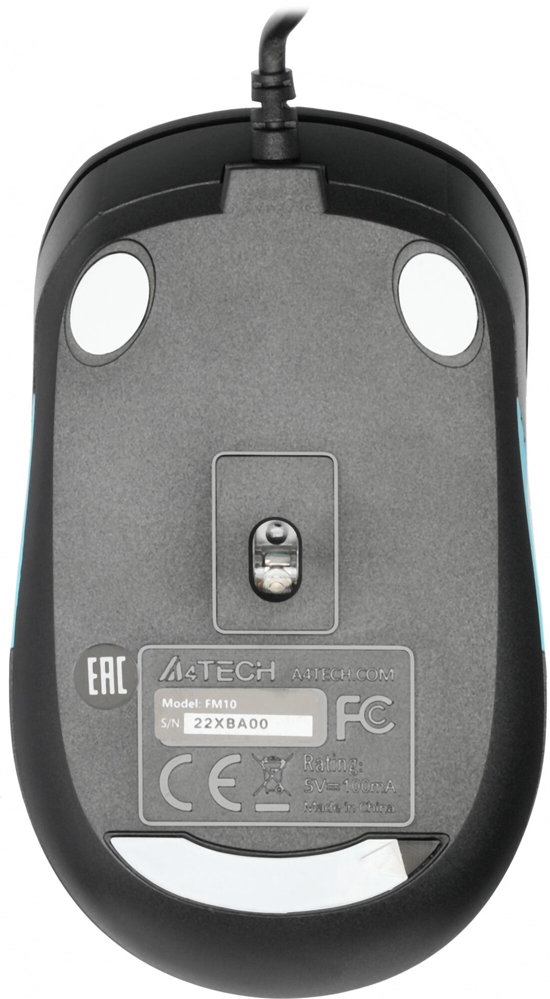 Мышь A4TECH Fstyler FM10S, оптическая, проводная, USB, черный и голубой [fm10s usb blue]