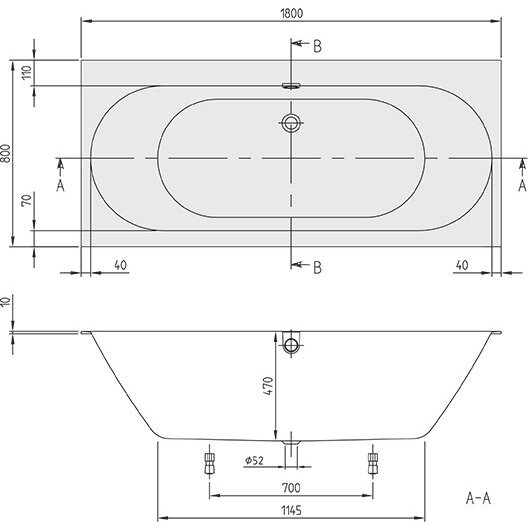 Квариловая ванна Villeroy&Boch Oberon 2.0 180x80 без гидромассажа