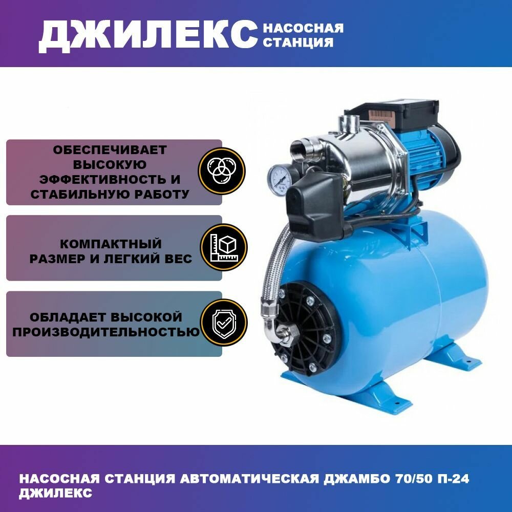 Купить ДЖИЛЕКС Джамбо 70/50 П-24 1100Вт 4200л/час (в компл.:Реле давления РДМ-5, гидроаккумулятор 24 литра) (4721)