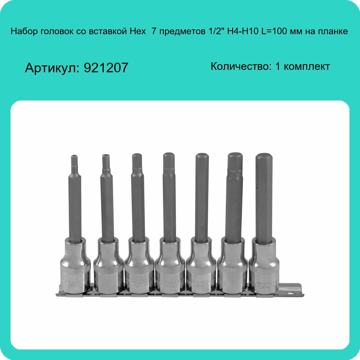 921207 Набор насадок торцевых 1/2"DR с вставками-битами шестигранными на держателе, H4-H10, 100 мм,