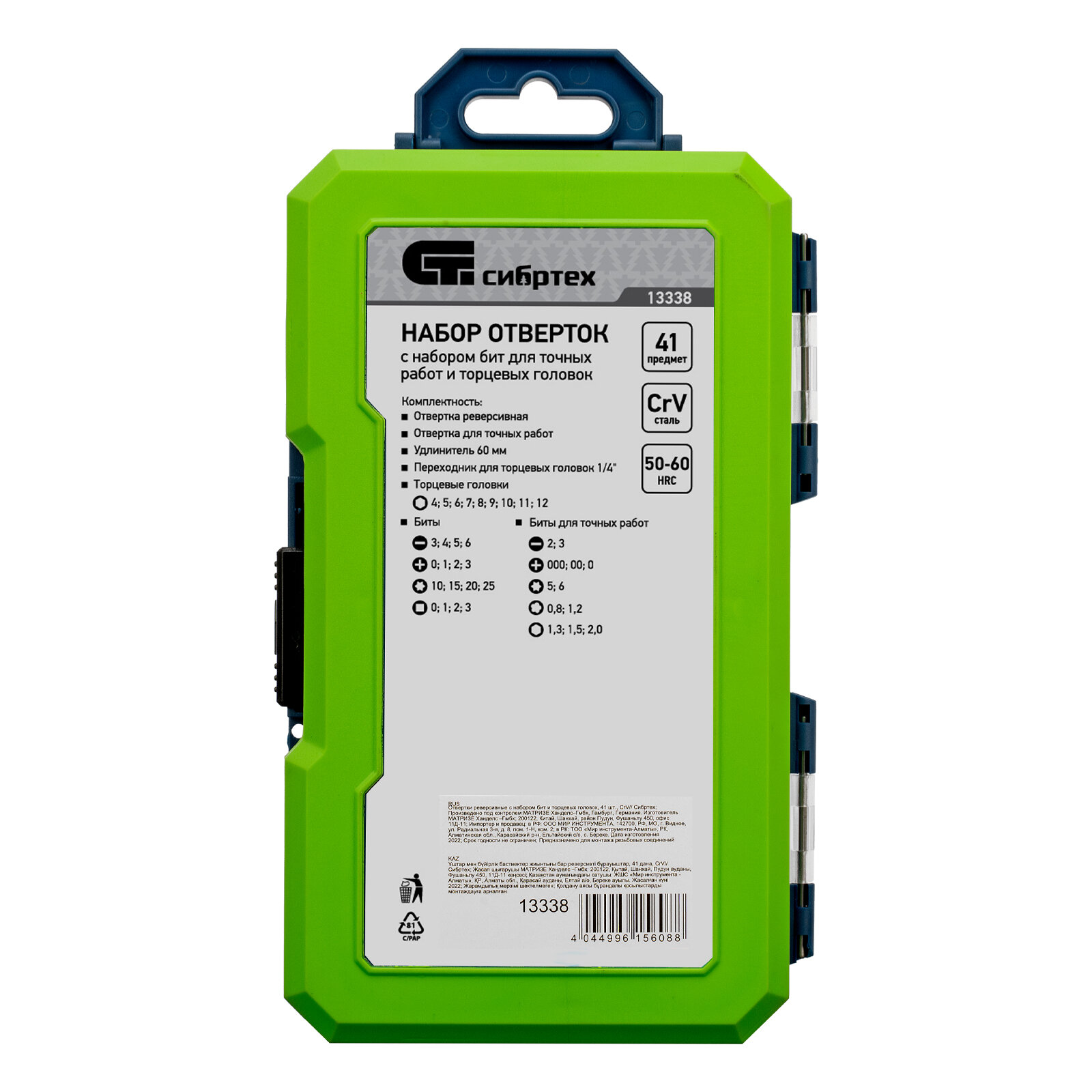 Отвертки реверсивные с набором бит и торцевыми головками, 41 шт, CrV Сибртех 13338
