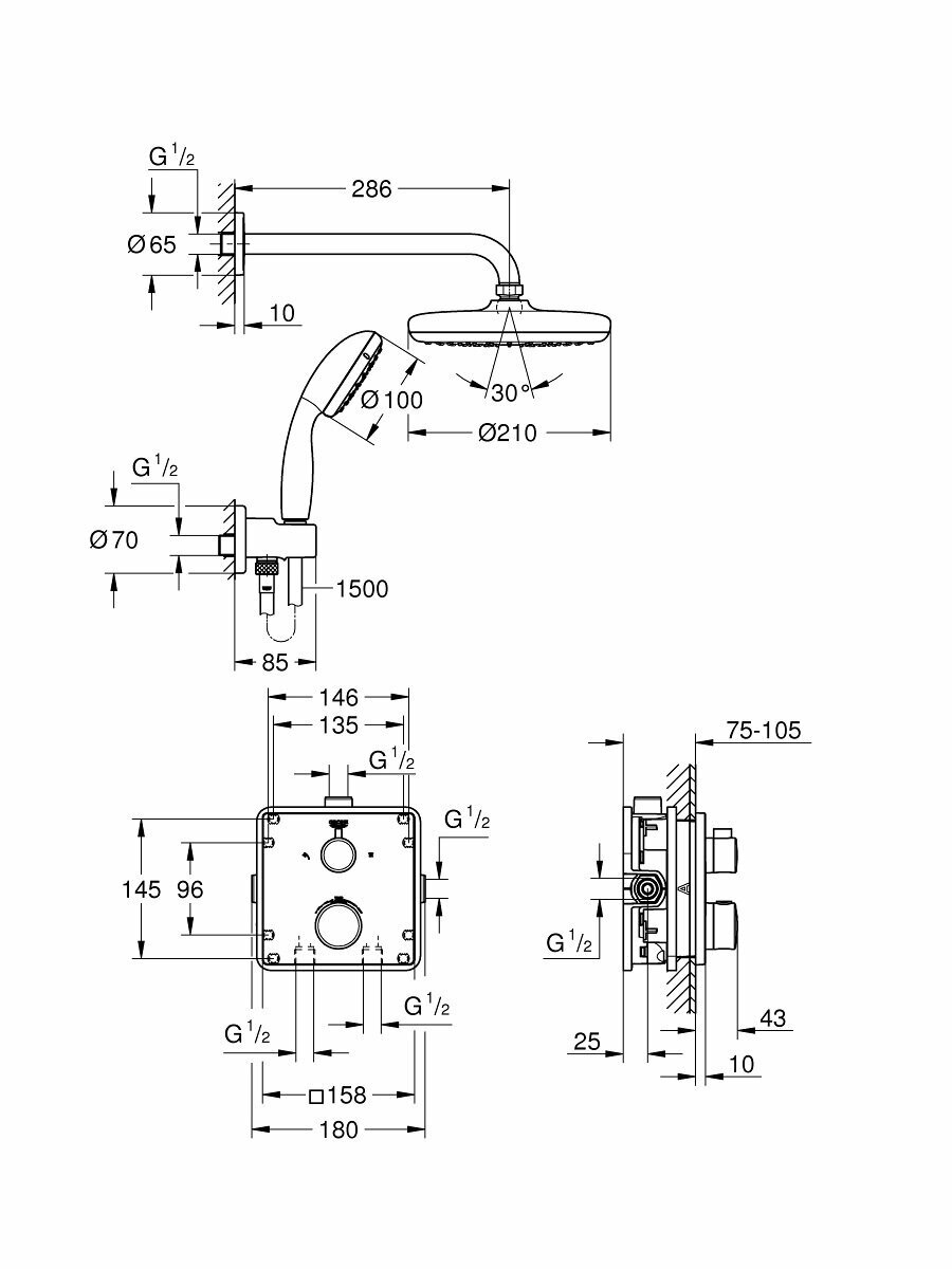 | Комплектация | grohtherm комплект готового монтажа с aquadimmer (24 079) - 1шт / grohe rapido smartbox 35 600/35 604 (универсальная встраиваемая часть) - 1шт / tempesta 210 верхний душ 9.5 л/мин (26 410) - 1шт / rainshower душевой кронштейн 286 мм (28 576 000) - 1шт / ручной душ tempesta 100 ii (27 597) - 1шт / подключение для душевого шланга (28 628) - 1шт / rotaflex душевой шланг 1500 мм 1/2" x 1/2" (28 409) - 1шт |