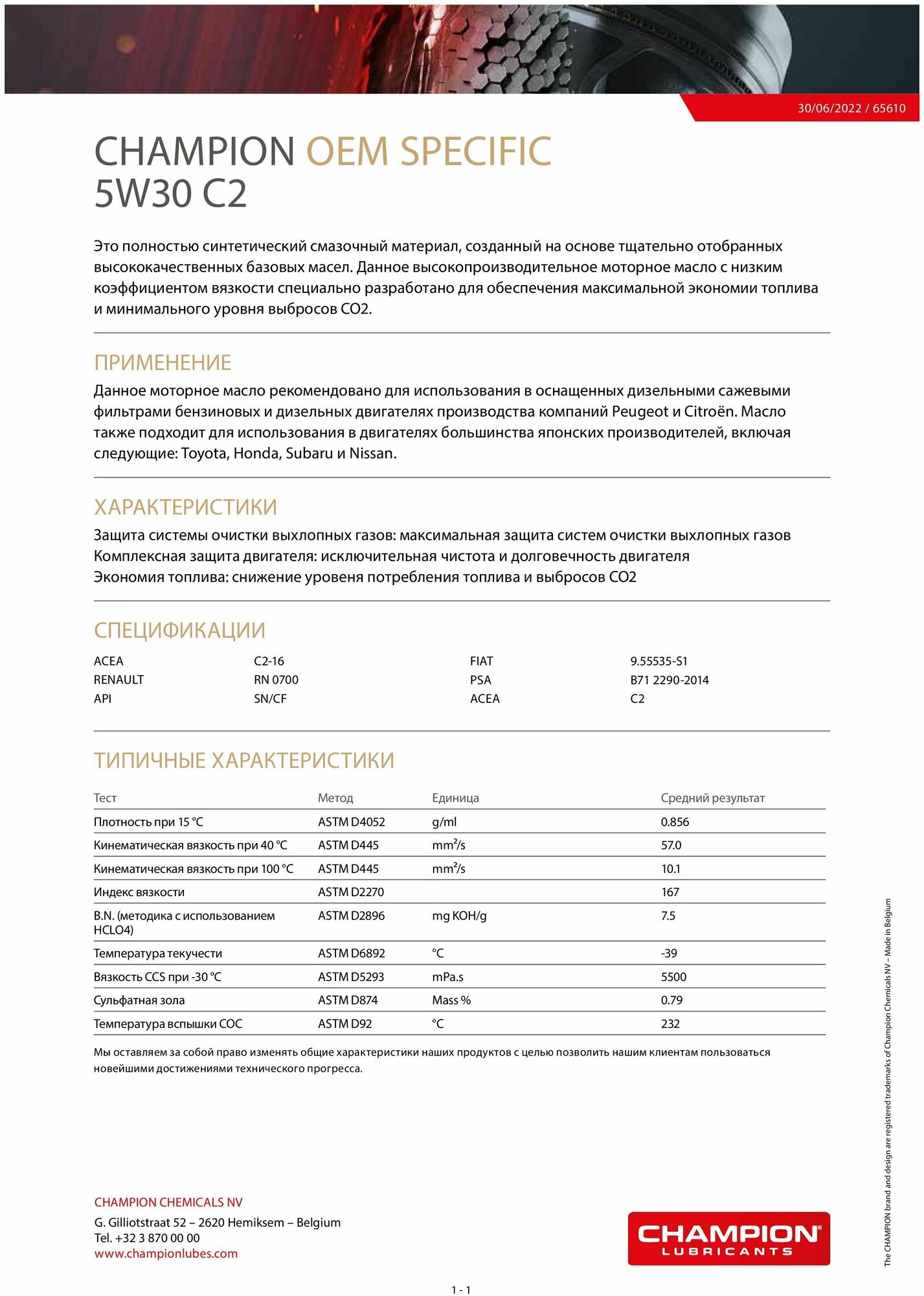 | Стандарт ACEA | С2 |
