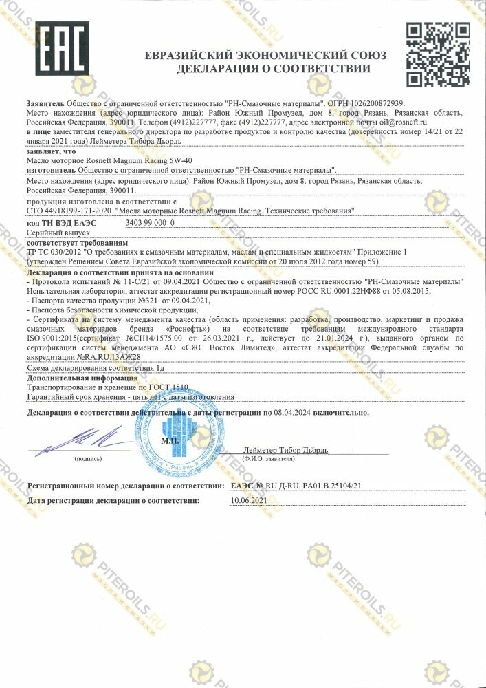 Rosneft Rn Magnum Racing 5w-40 (1л) Рнпк