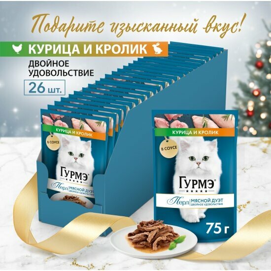 Гурмэ Перл Мясной Дуэт 75 г влажный корм для взрослых кошек, со вкусом кролик и курица, нежное филе в соусе, мясной дуэт х26 штук