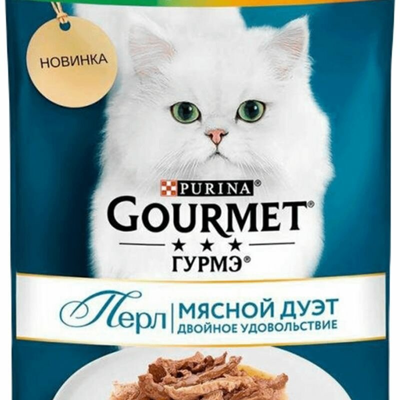 GOURMET PERLE мясной дуэт для взрослых кошек нежное филе с курицей и кроликом в соусе (75 гр х 26 шт)