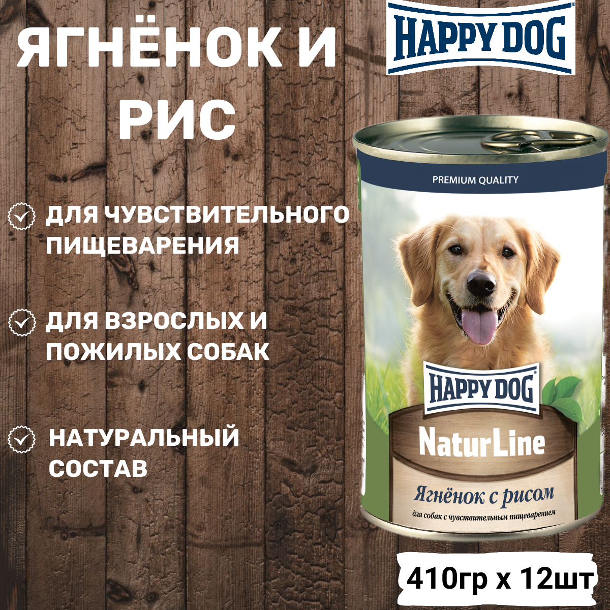 Консервы для собак Happy Dog NatureLine (Ягненок с рисом), 410 гр. По 12 шт.