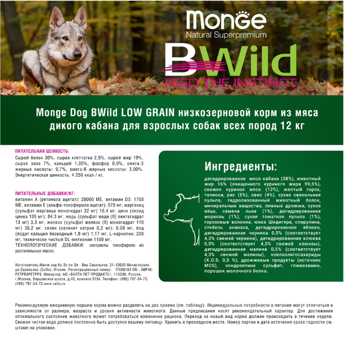 Ниже Вы можете прочитать отзывы на Сухой корм Monge Dog BWild LOW GRAIN, для взрослых собак, низкозерновой, из мяса дикого кабана 12 кг, ознакомится с подробными характеристиками, посмотреть интересные обзоры и фотографии на Сухой корм Monge Dog BWild LOW GRAIN, для взрослых собак, низкозерновой, из мяса дикого кабана 12 кг.