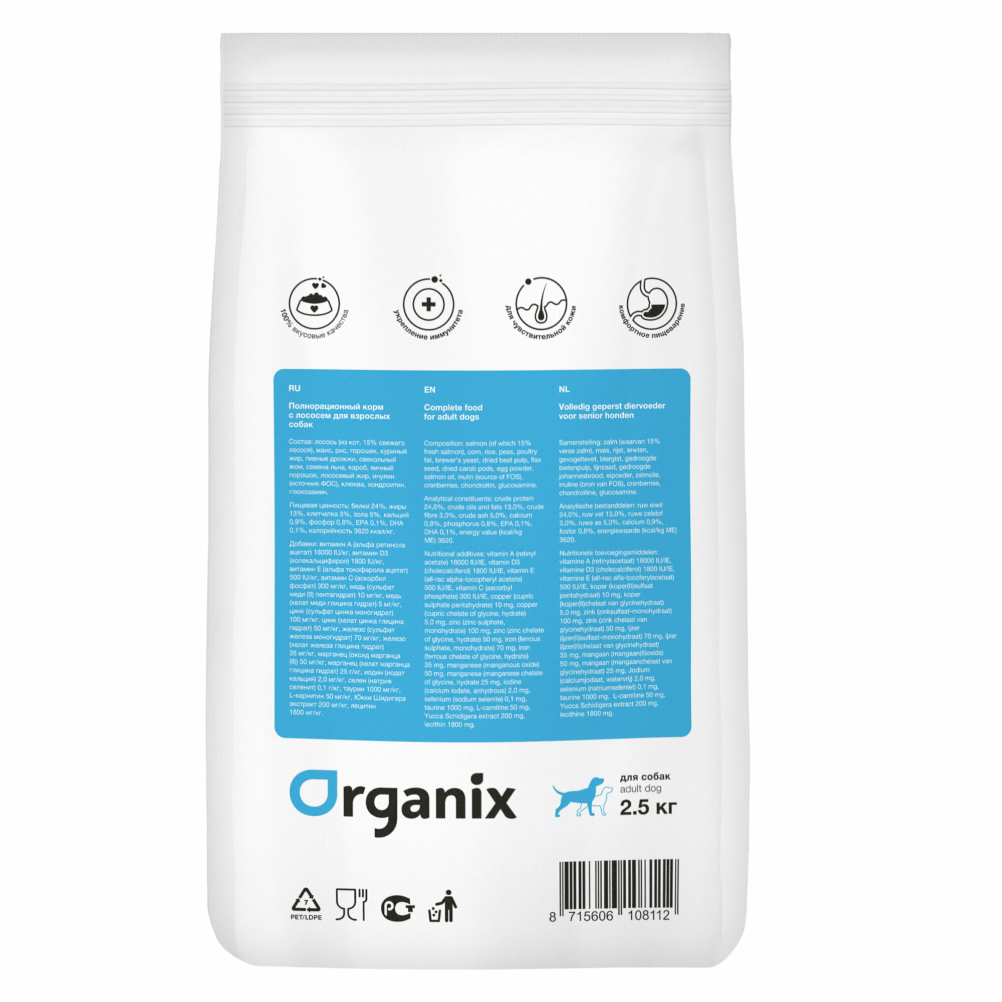 Сухой корм для собак ORGANIX при чувствительном пищеварении, лосось 1 уп. х 1 шт. х 2.5 кг (для средних пород)