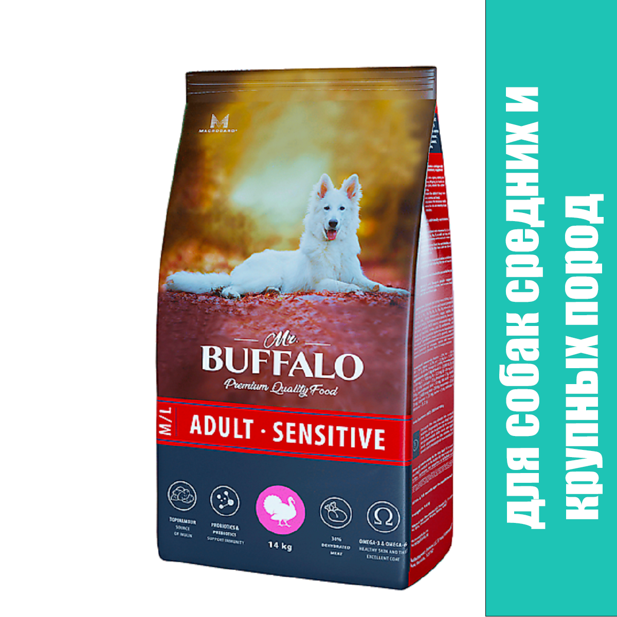 Корм сухой для собак Mr.buffalo ADULT M/L SENSITIVE для собак средних и крупных пород, индейка, 14кг