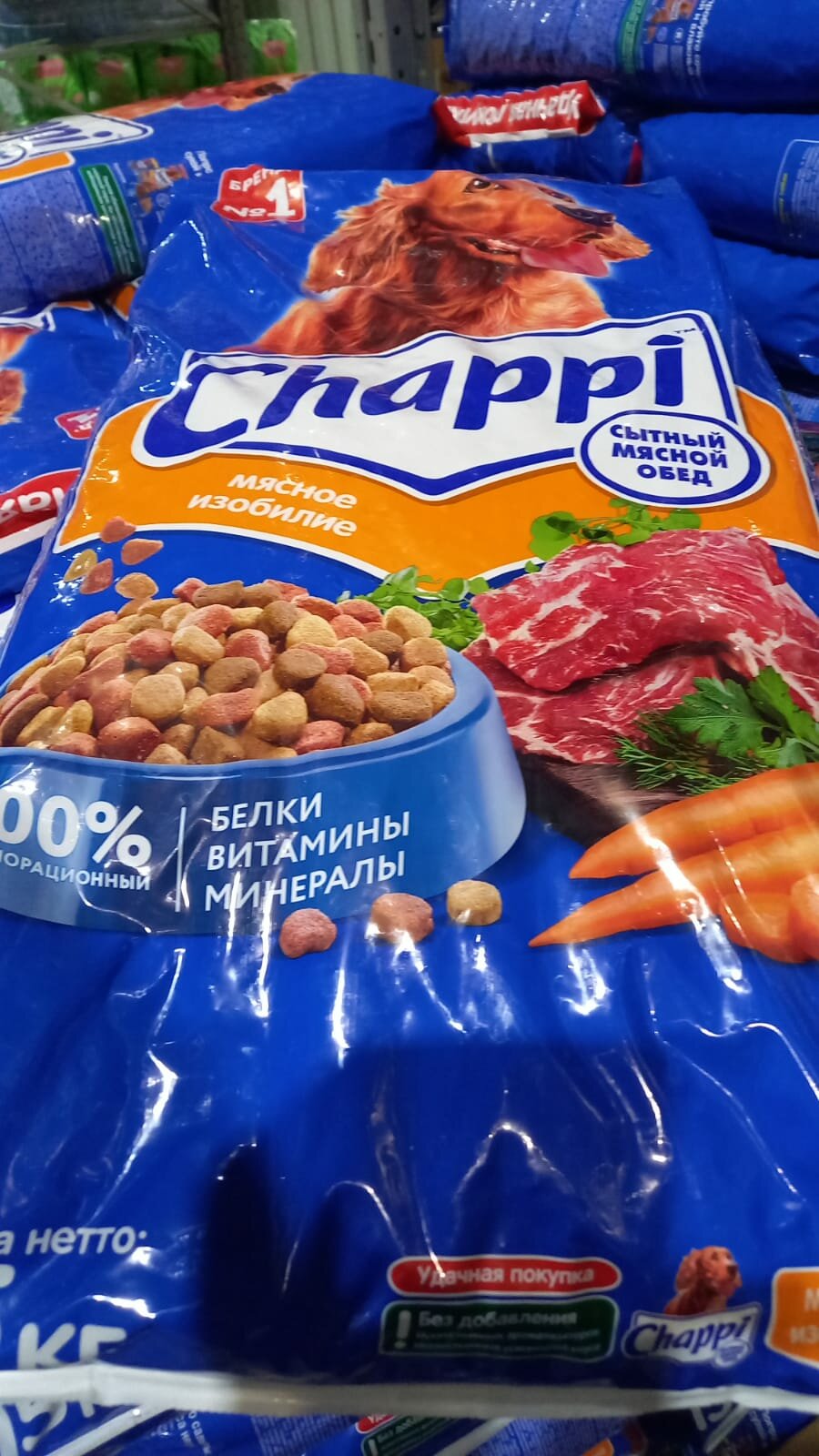 | Минусы: | Заехал забрать после Ашана, где завезли этот корм и выставили по 1500. Ха-ха.