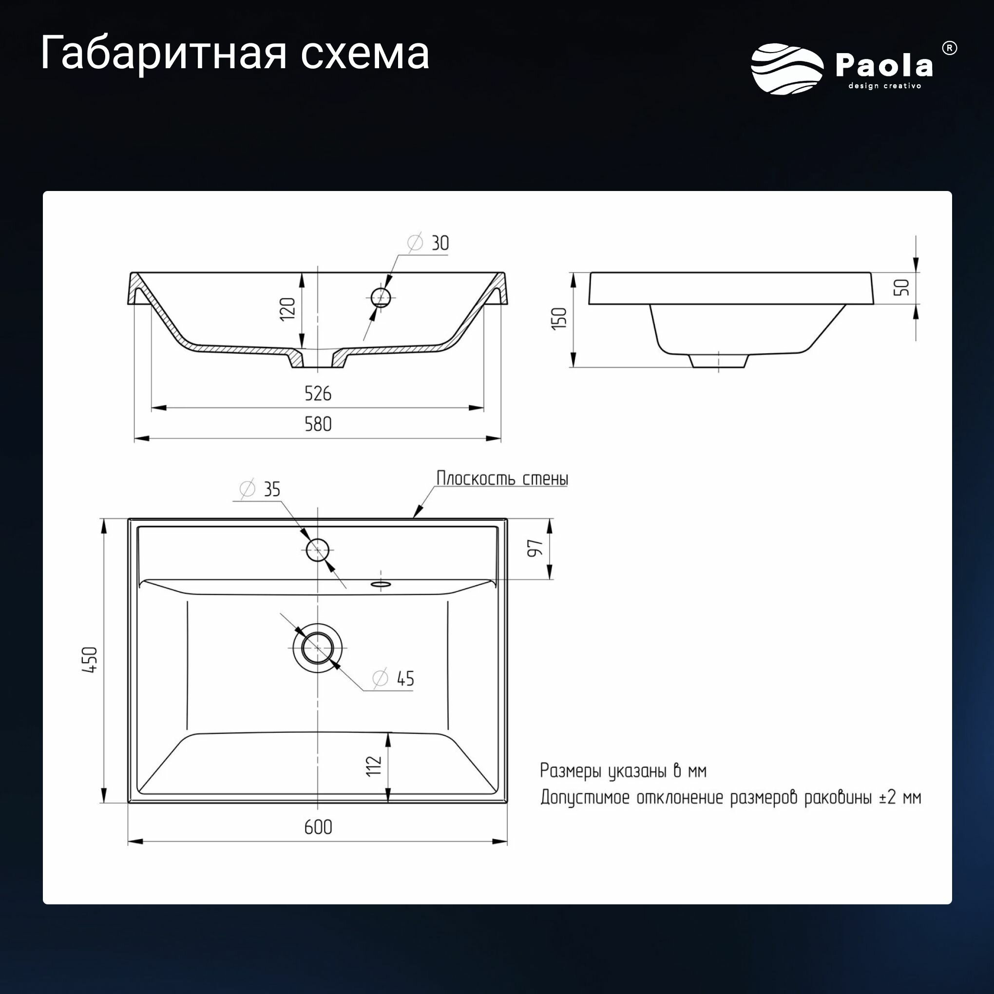 Раковина Paola Alba 600, белый интересное: