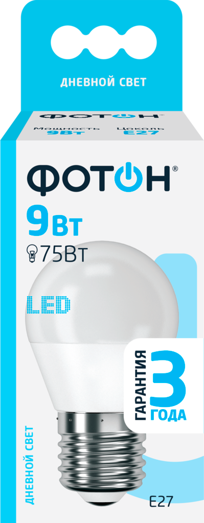 Лампа светодиодная фотон E27 9Вт, холодный свет, шар интересное: