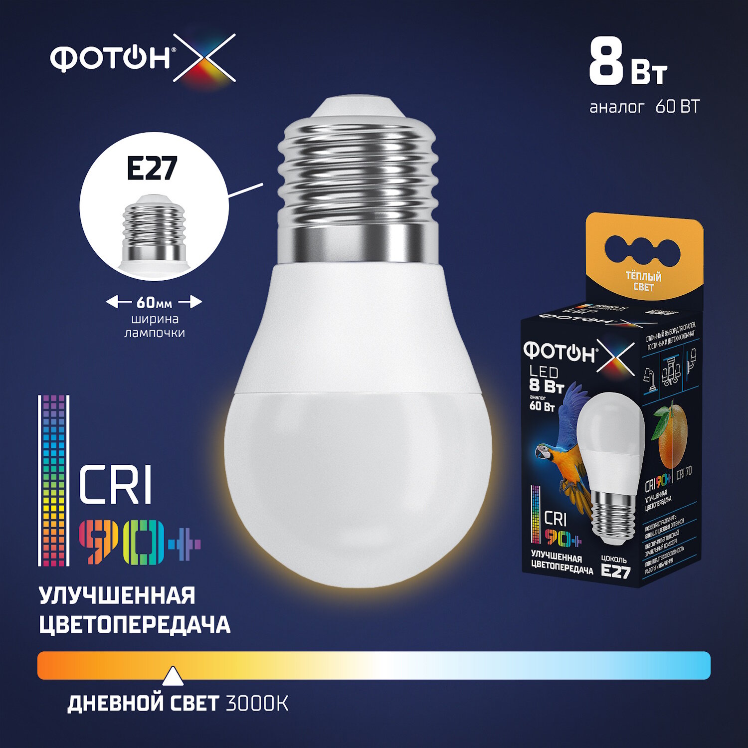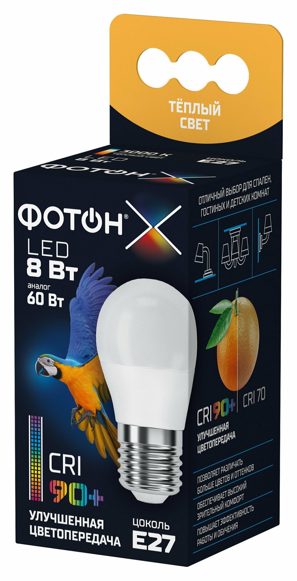 Лампа светодиодная фотон LED P45-C 8Вт E27 3000K, серия Х интересное: