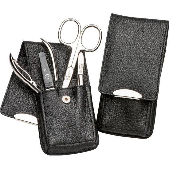 Маникюрный набор YES, 4 пр. Футляр: натуральная кожа, цвет черный, 9233