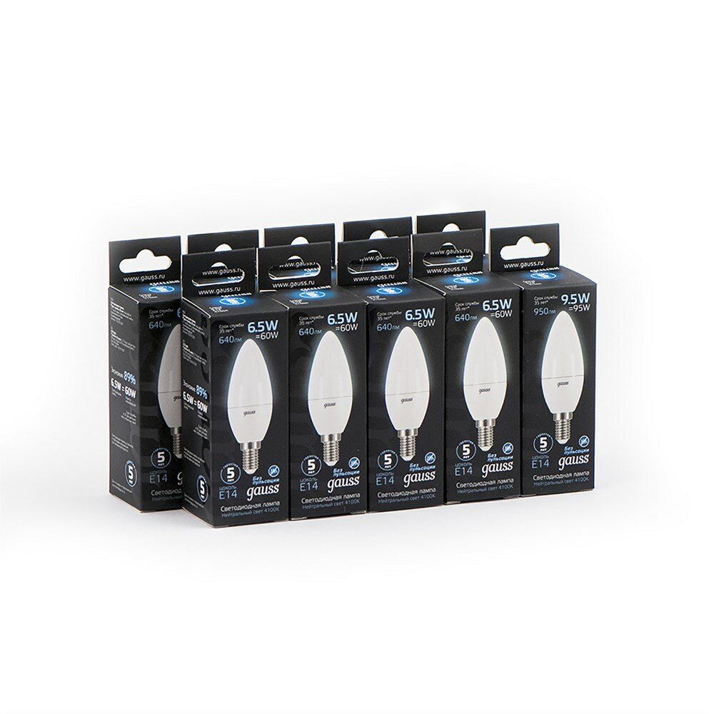 (5 шт) Лампа Gauss Свеча 6.5W 550lm 4100К E14 LED 1/10/100