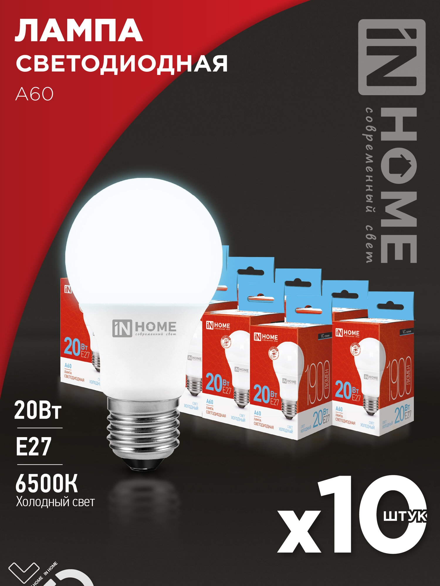 Ниже Вы можете прочитать отзывы на Лампа светодиодная LED-A60-VC 20Вт 230В Е27 6500К 1900Лм IN HOME (10шт в упаковке), ознакомится с подробными характеристиками, посмотреть интересные обзоры и фотографии на Лампа светодиодная LED-A60-VC 20Вт 230В Е27 6500К 1900Лм IN HOME (10шт в упаковке).